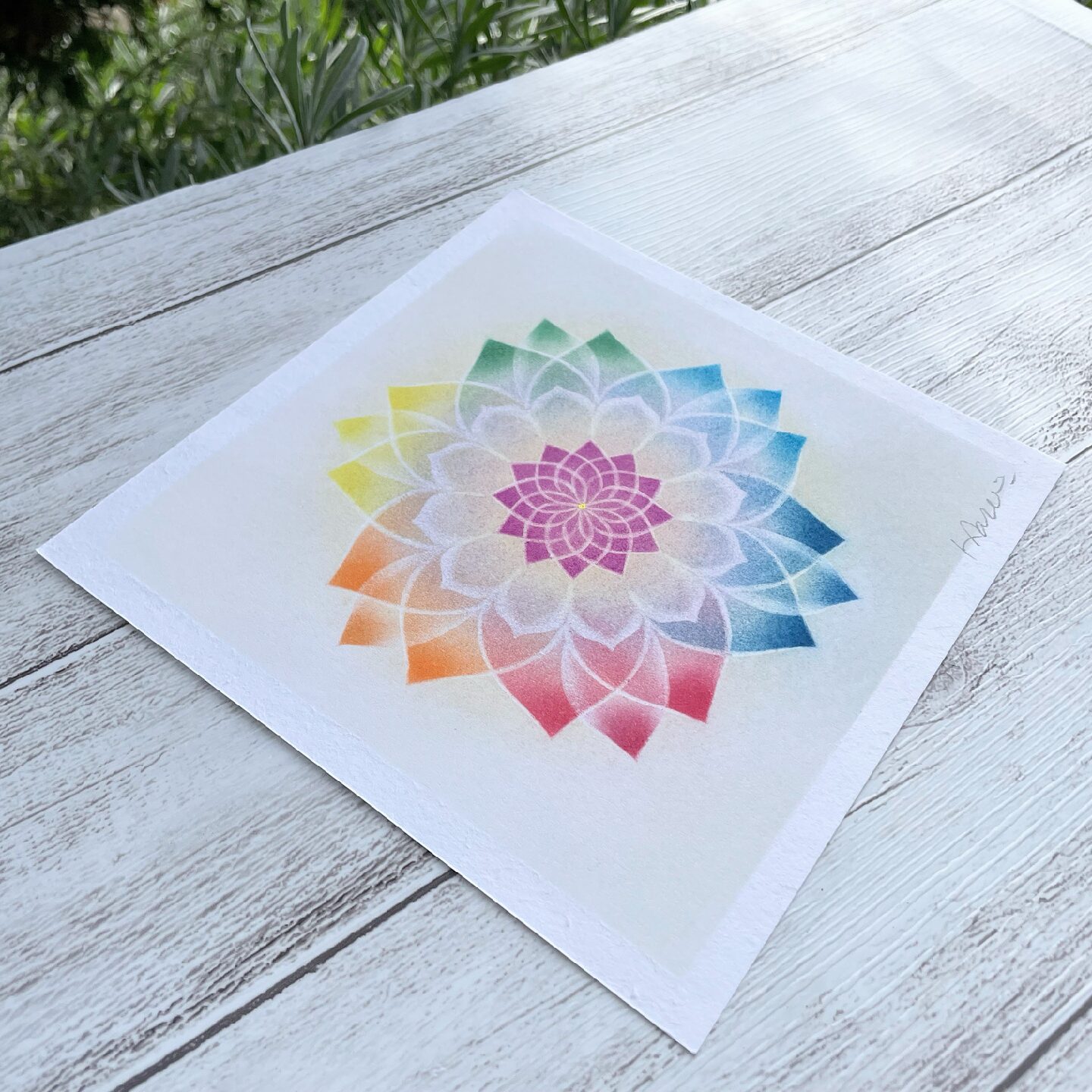 チャクラ曼荼羅アートを描いてみませんか?チャクラ曼荼羅アート講座は、チャクラの「色」を用いてパステルで曼荼羅を描くことで、チャクラバランスをセルフケアをしていただける講座です。またチャクラの基礎的なことも学べます。